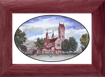 На сайте можно заказать или купить картинки, сувениры с видами Минска, картины художника,Минский сувенир, Красный Костёл, подарить картинку, Костёл св. Симеона и Алены, Минске, картинка, подарок, прздник города, минск, Красный Костёл.